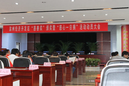 濱州傳媒網(wǎng)訊(記者郭瑩 通訊員李華)2011年5月26日上午,開發(fā)區(qū)隆重舉行2010年度“慈善獎”頒獎和2011年度“慈心一日捐”活動動員大會。會議由開發(fā)區(qū)黨工委委員、主任助理、公安分局局長張愛國同志主持,黨工委書記、管委會主任姚和民同志到會并作重要講話,會議表彰了2010年度為慈善事業(yè)做出突出貢獻的單位和個人,區(qū)黨工委委員、管委會副主任、慈善總會會長馬景澤同志接收了7家企業(yè)的捐贈,其中,福豪鋼材市場管理有限公司認捐基金200萬元,海得曲軸有限責(zé)任公司認捐基金200萬元,華晨新型建材有限公司認捐基金100萬元,中大兆華牧業(yè)科技有限公司認捐基金100萬元,金河房地產(chǎn)開發(fā)有限公司認捐基金100萬元,